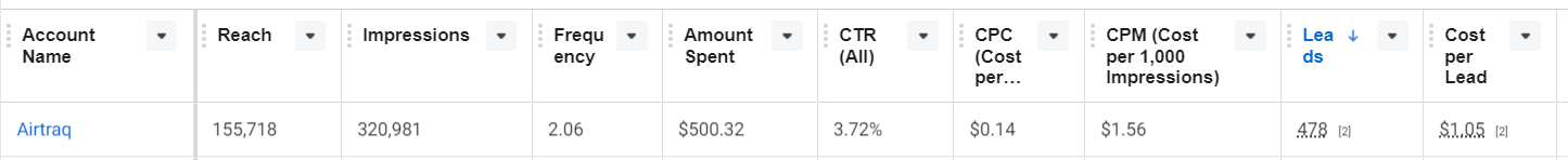 During the short period of time we managed to get 478 leads for $1.05. CTR was $3.72 total.